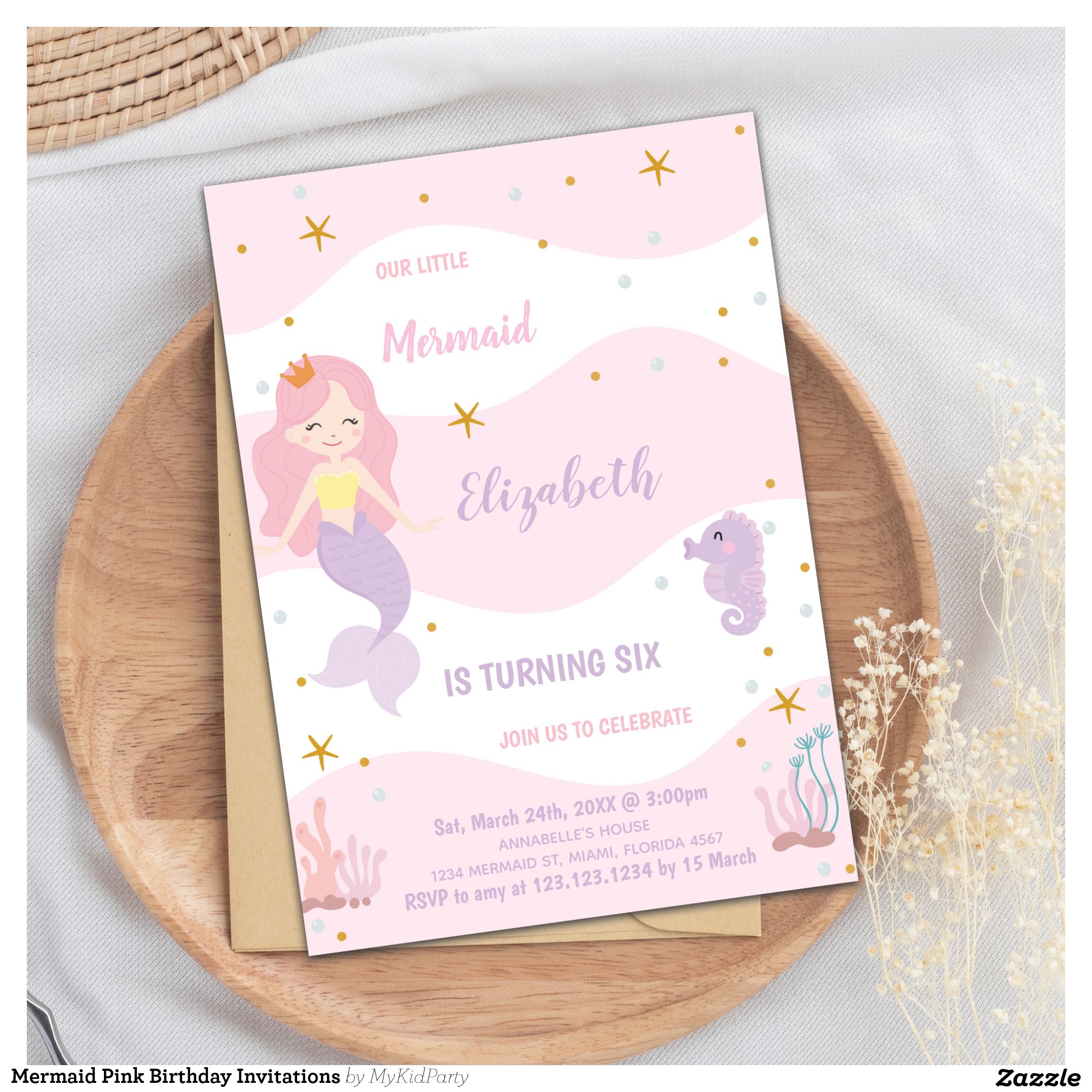 Mermaid Pink Birthday Invitations