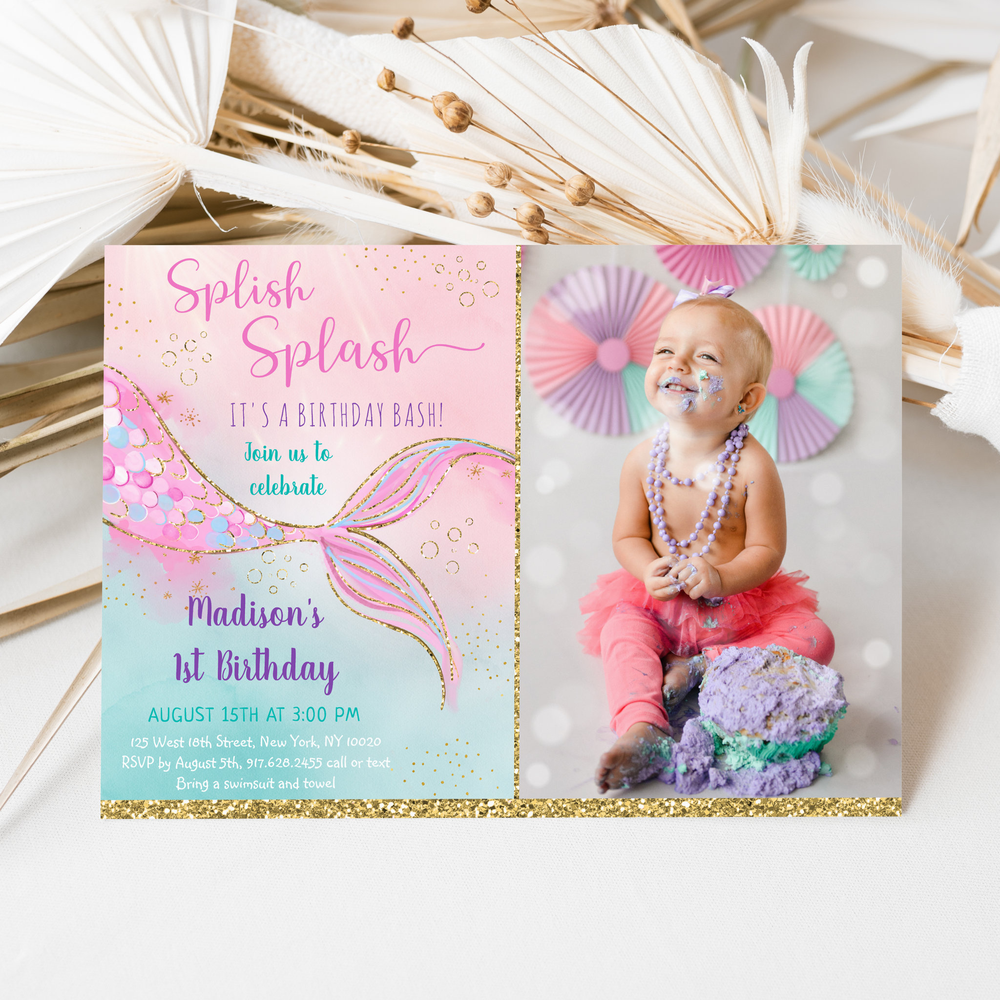 Be the first to review “Mermaid Pink Purple First Birthday Invitation”