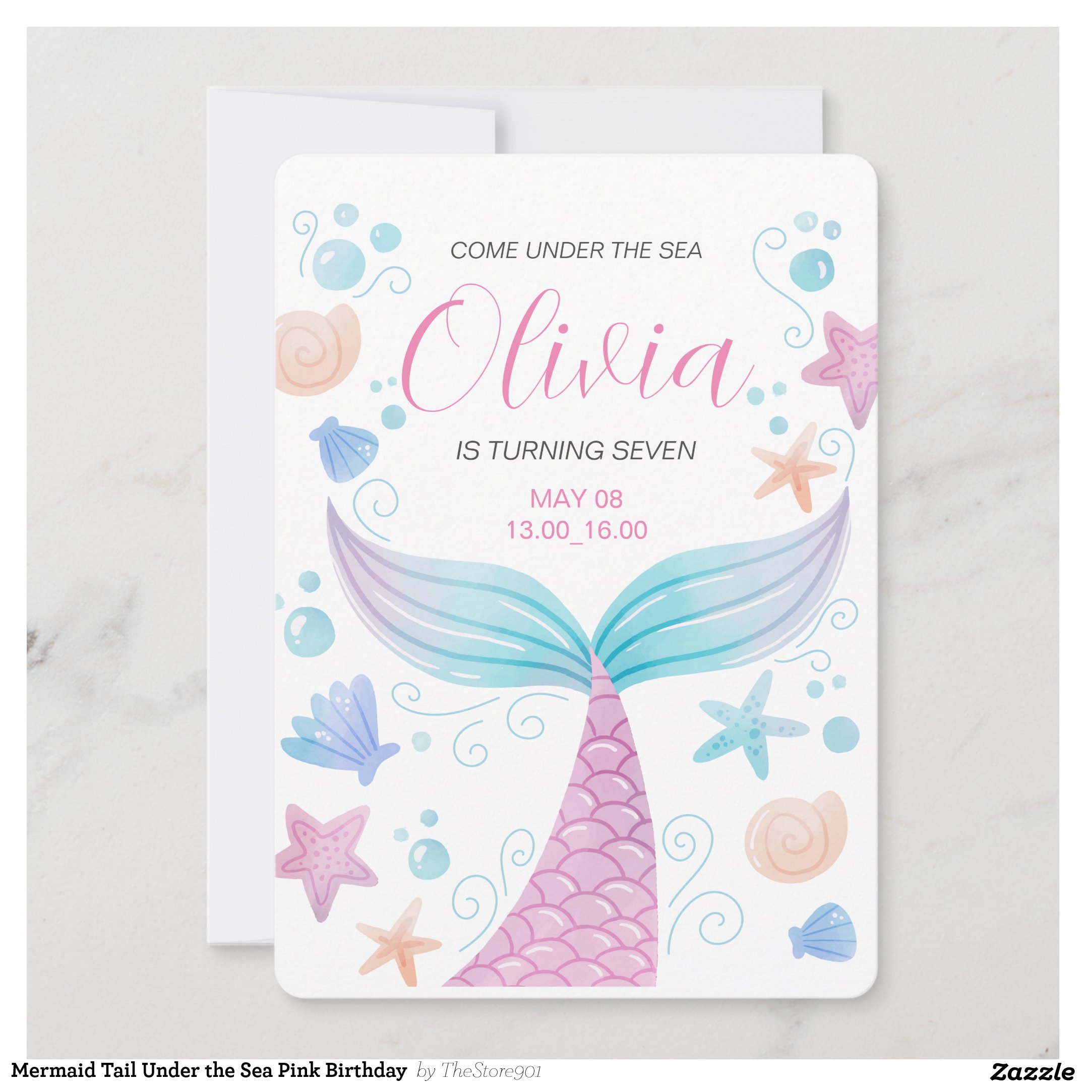 Be the first to review “Mermaid Tail Under the Sea Pink Birthday Invitation”