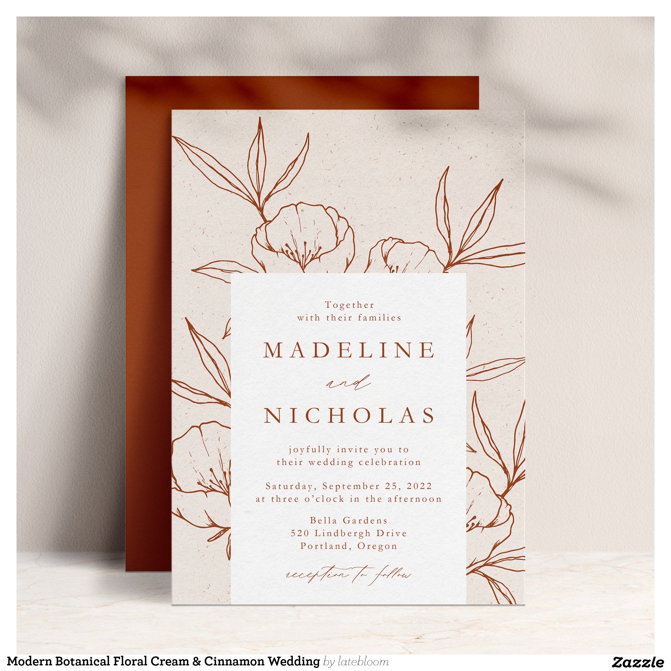 Modern Botanical Floral Cream & Cinnamon Wedding Invitation