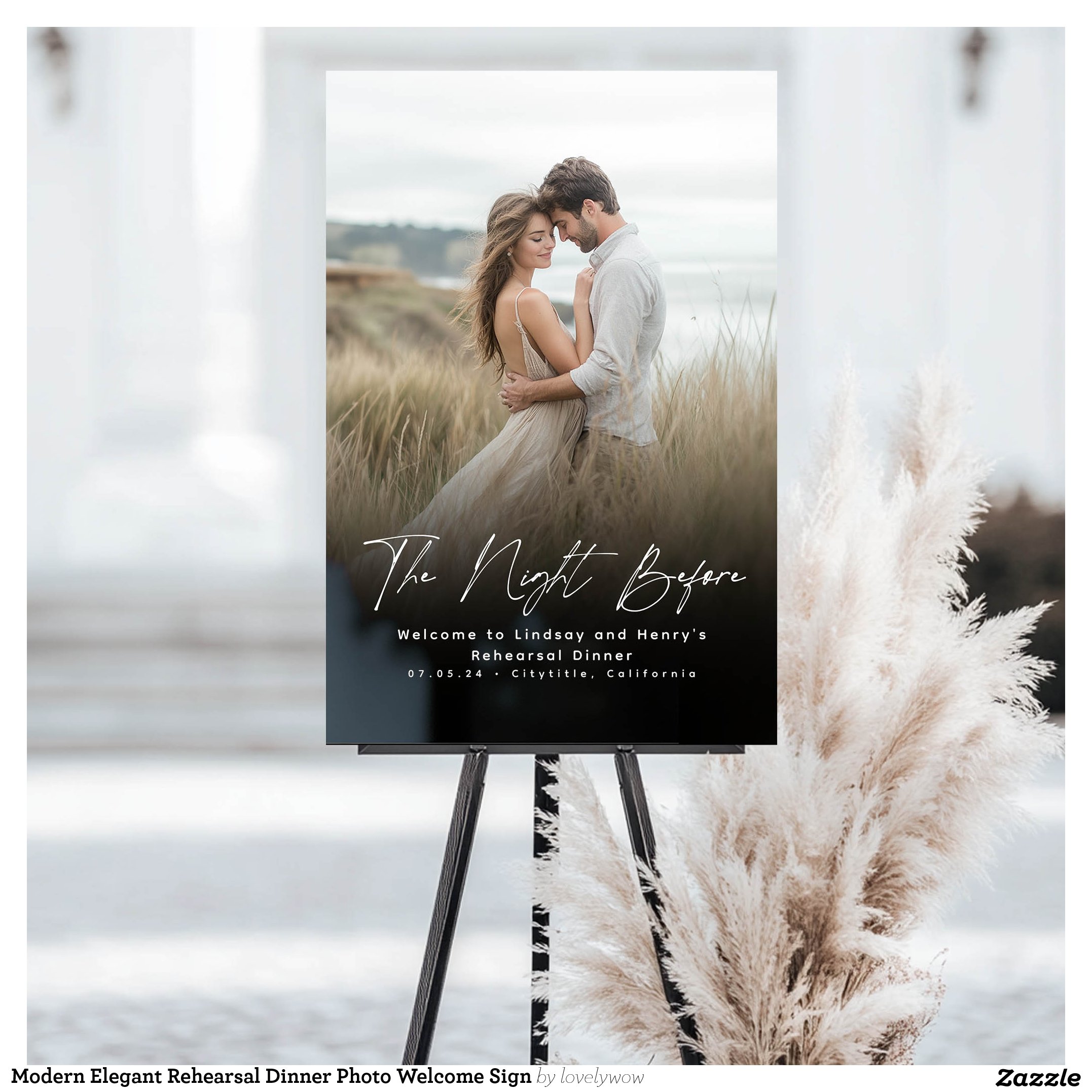 Modern Elegant Rehearsal Dinner Photo Welcome Sign