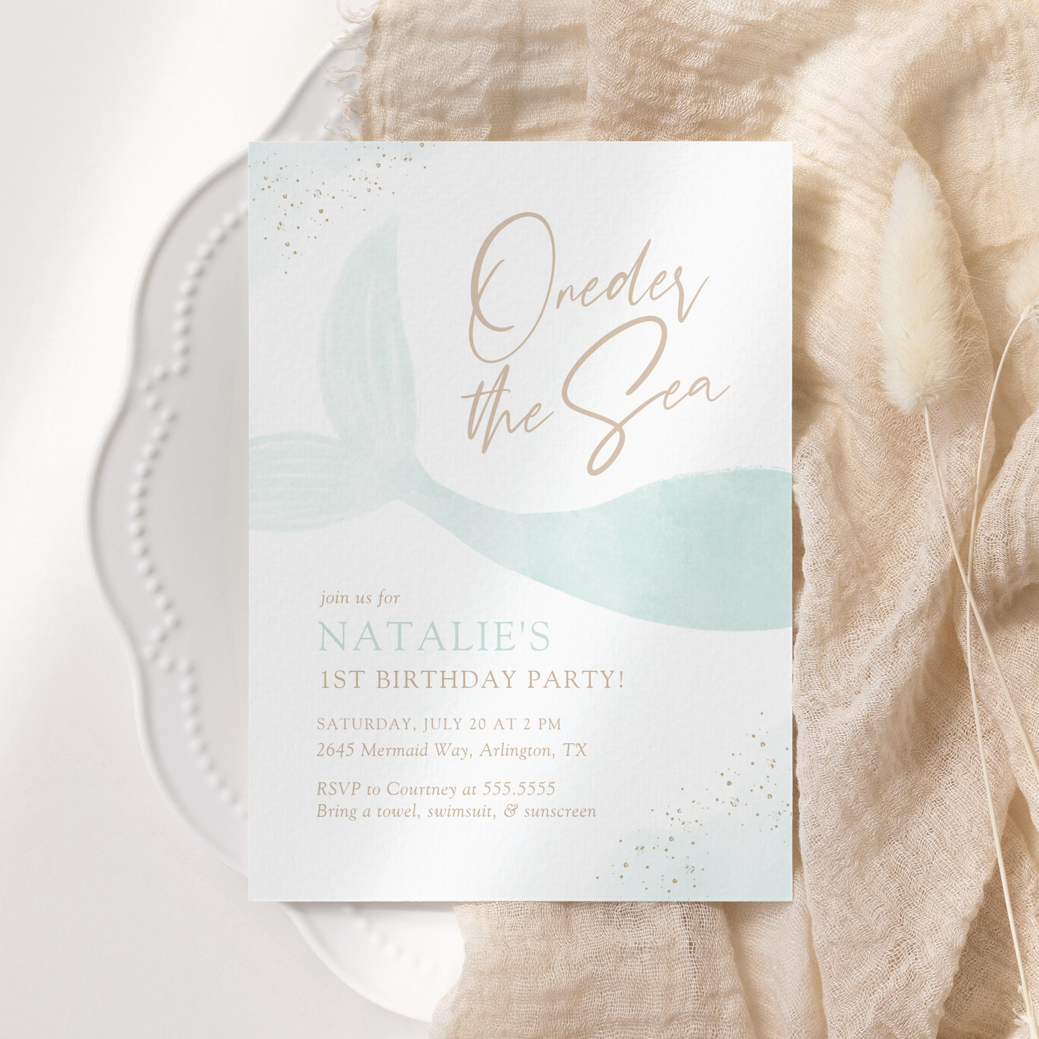Oneder the Sea Turquoise Mermaid Girl Birthday Invitation