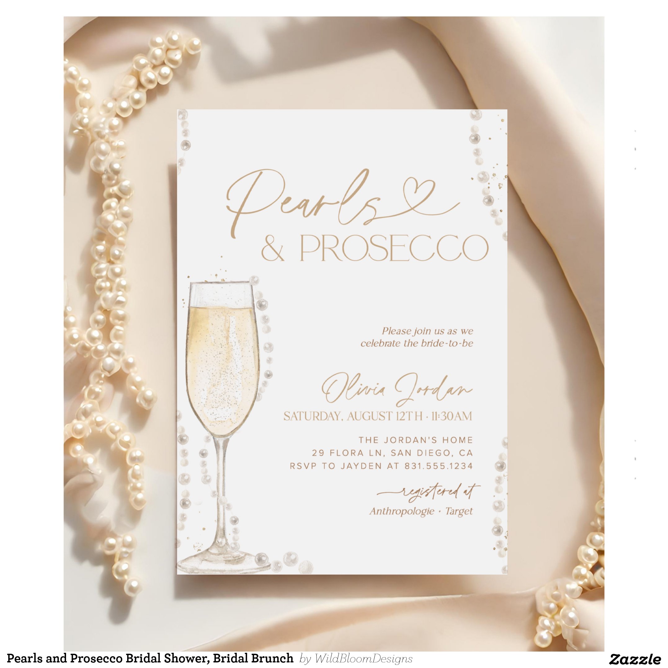 Pearls and Prosecco Bridal Shower, Bridal Brunch Invitation