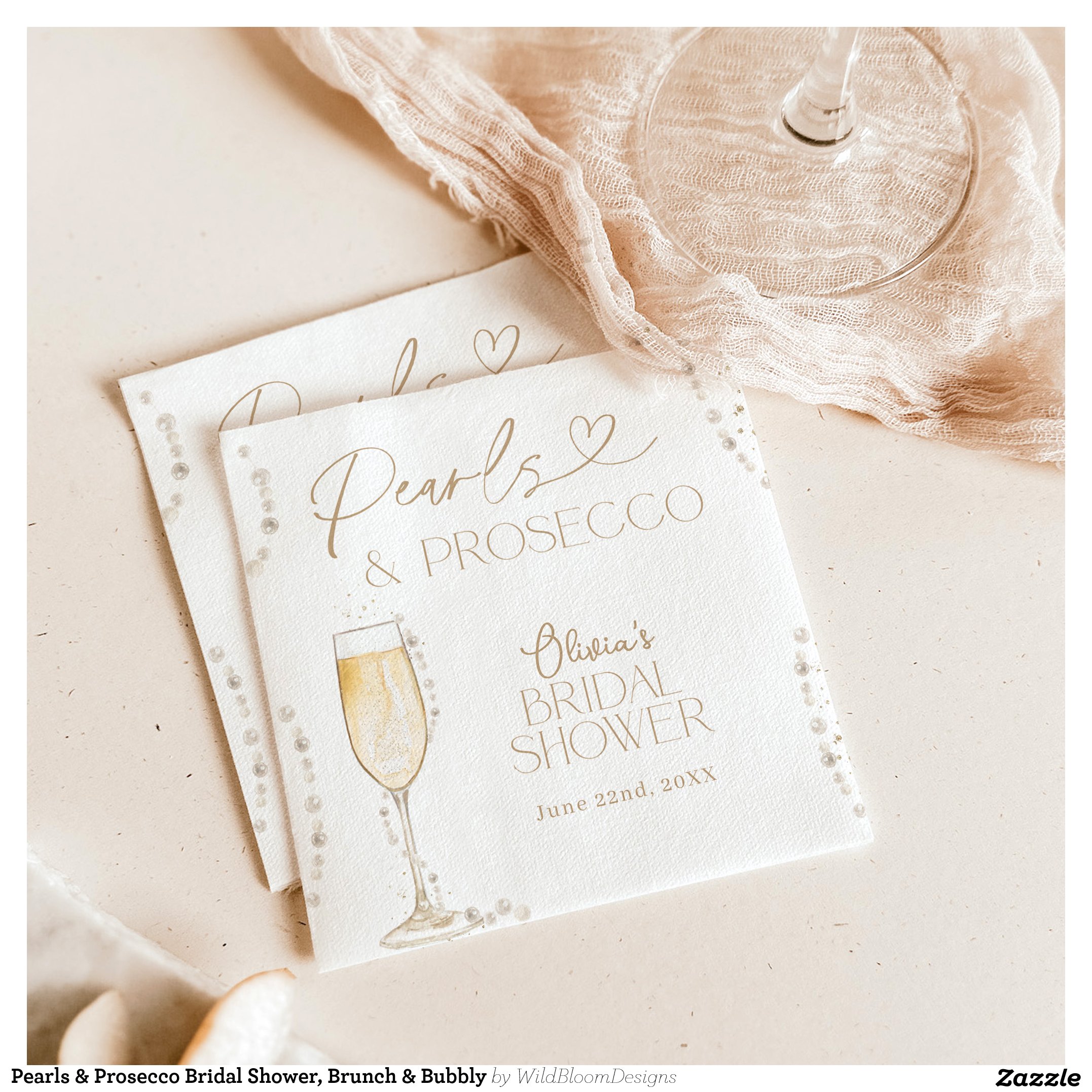 Pearls & Prosecco Bridal Shower, Brunch & Bubbly Napkins