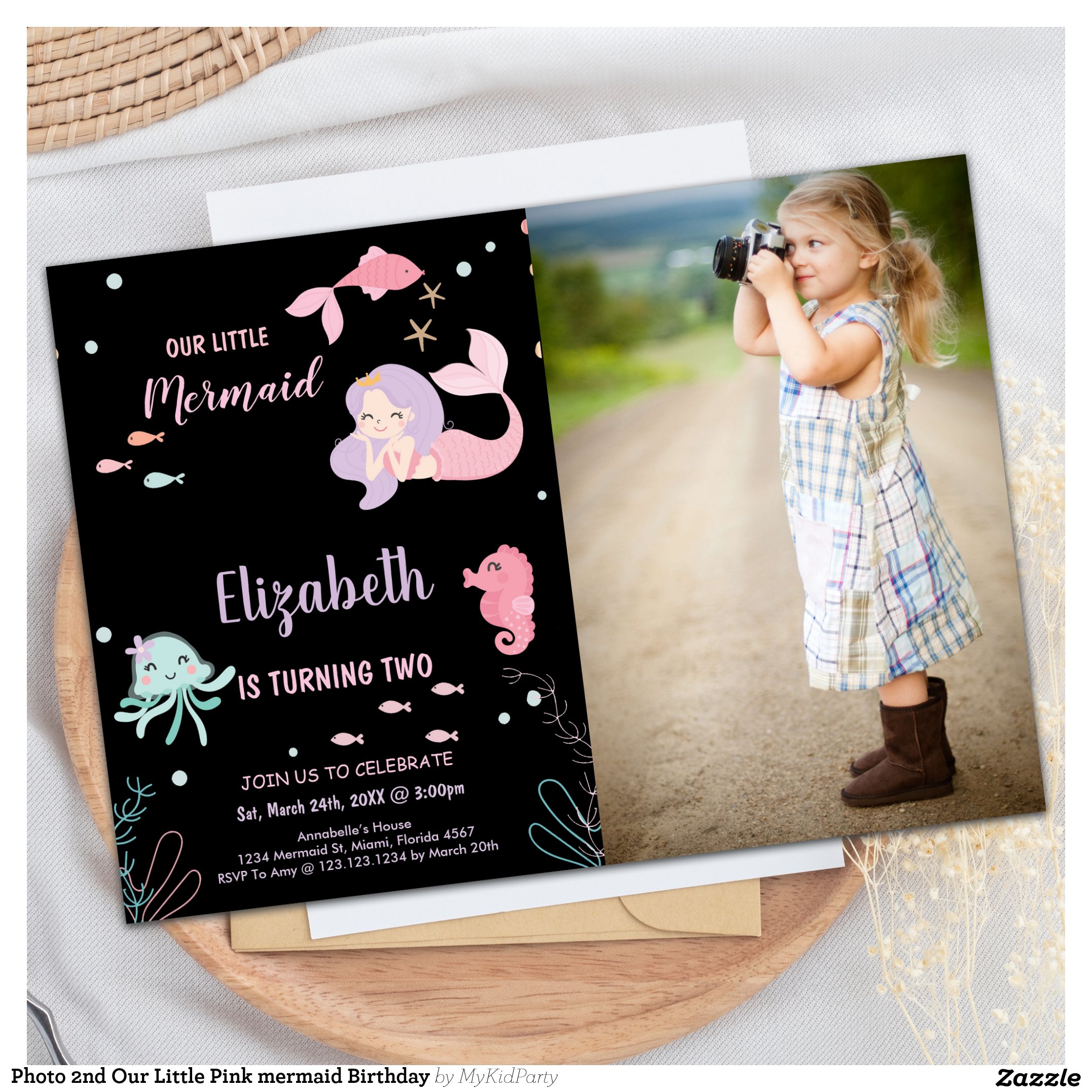Photo 2nd Our Little Pink mermaid Birthday Invitation