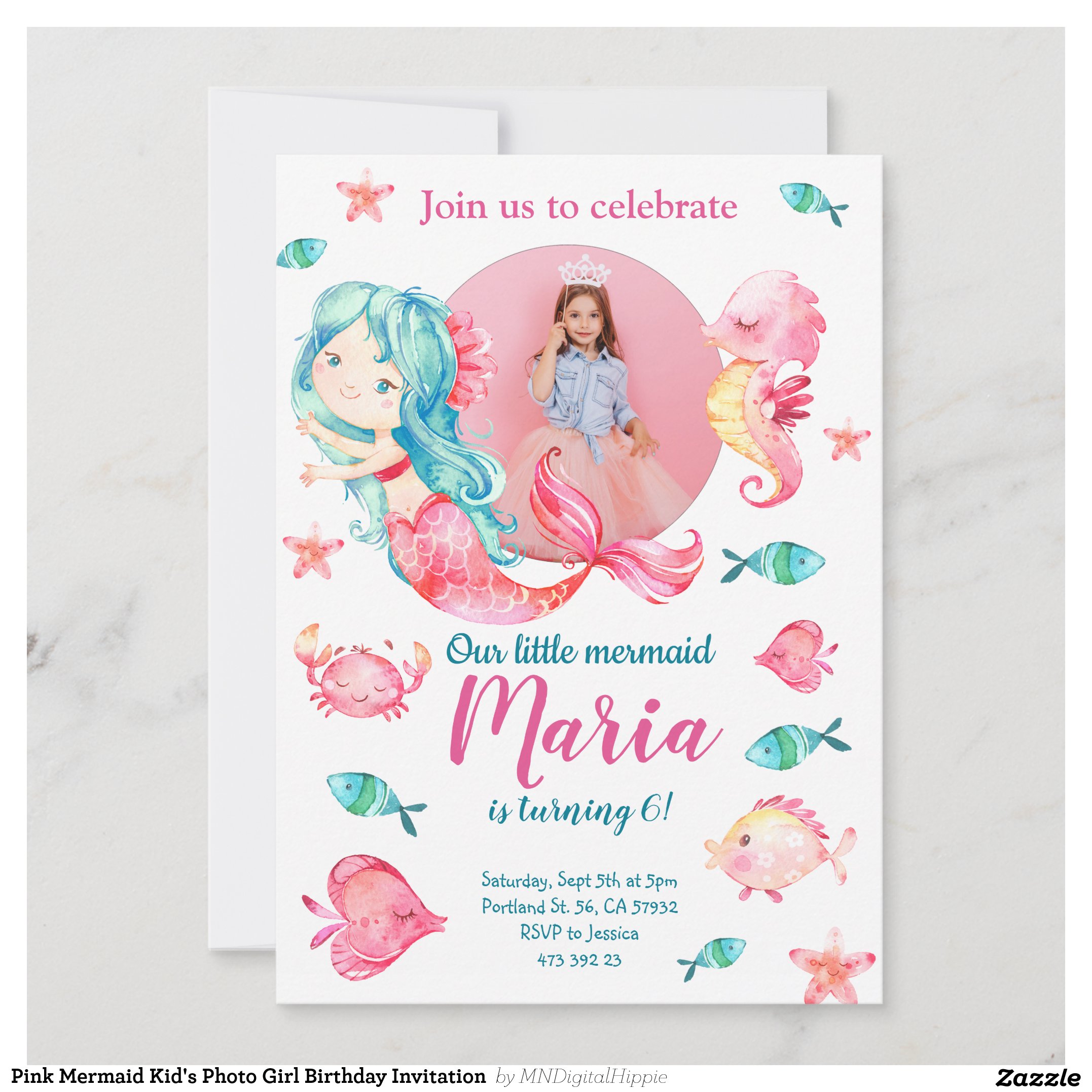 Be the first to review “Pink Mermaid Kid’s Photo Girl Birthday Invitation”
