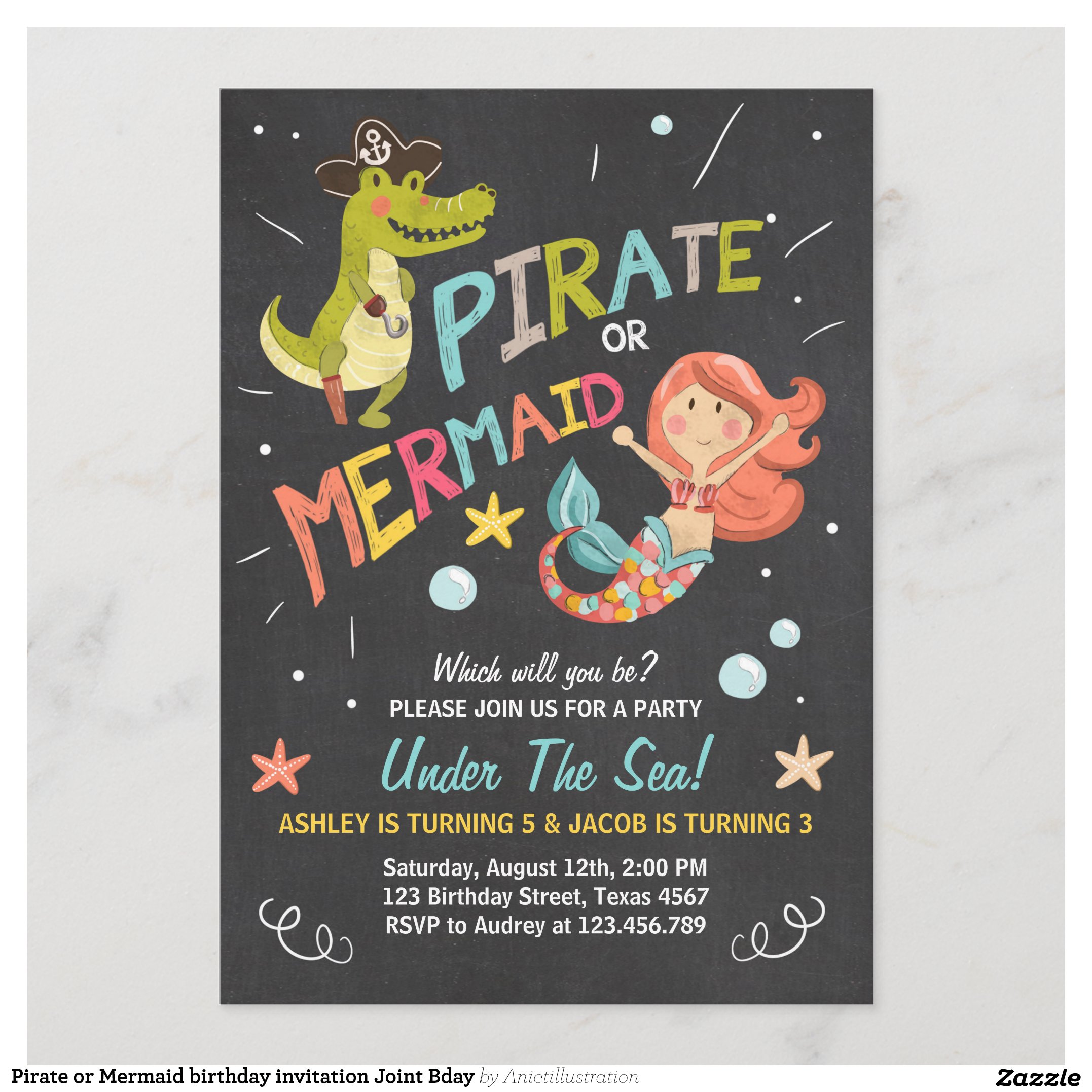 Be the first to review “Pirate or Mermaid birthday invitation Joint Bday”
