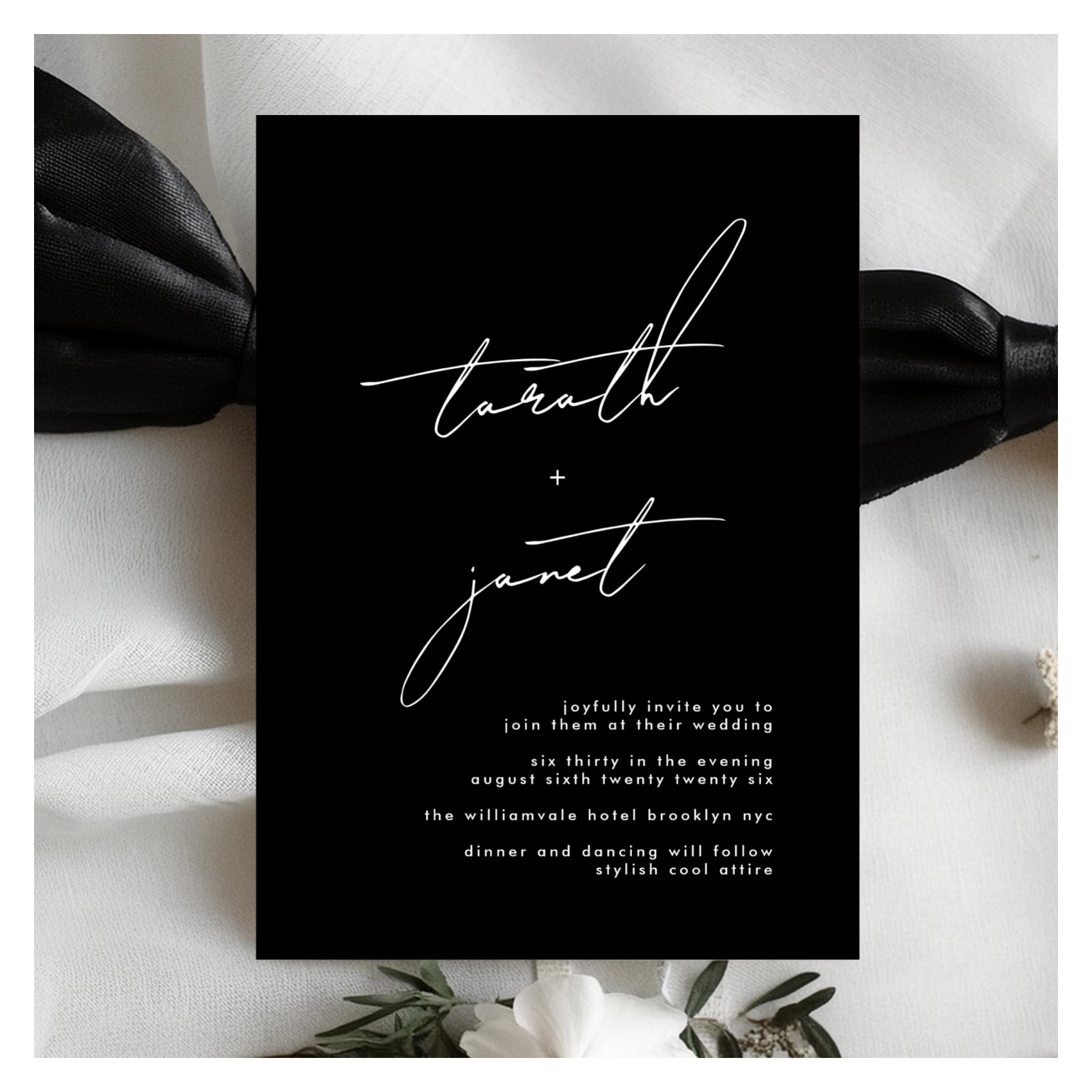 Premium NAMES Stylish Black & White Wedding Invitation