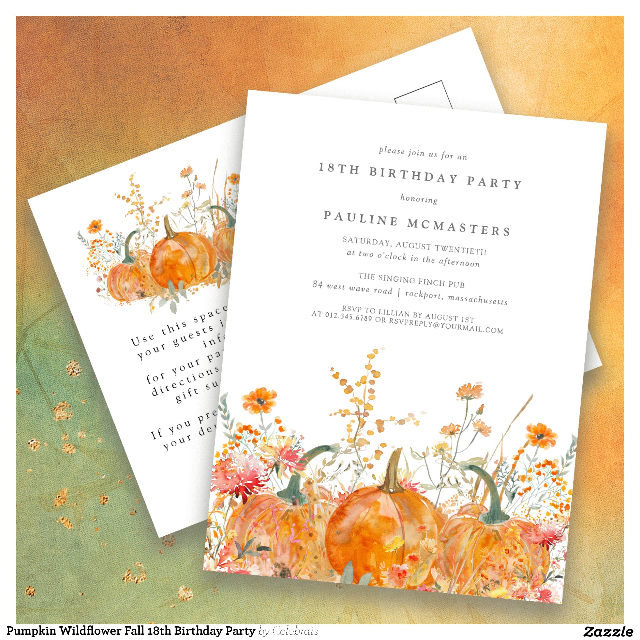 Be the first to review “Pumpkin Wildflower Fall 18th Birthday Party Invitation Postcard”