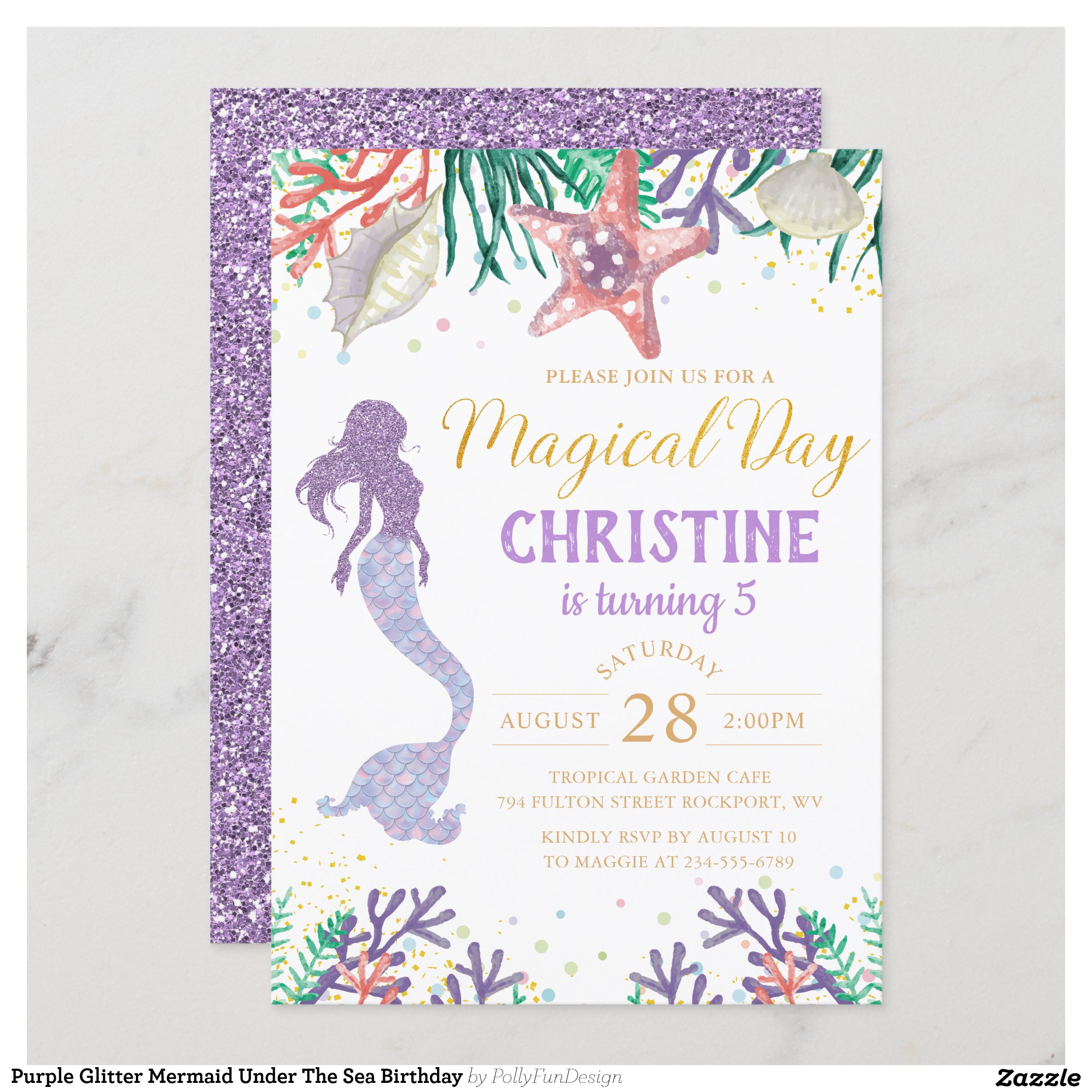 Be the first to review “Purple Glitter Mermaid Under The Sea Birthday Invitation”