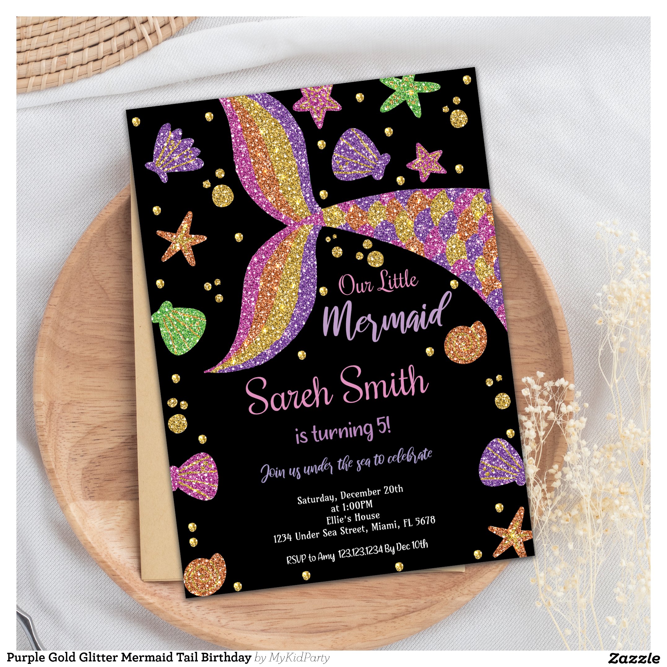 Be the first to review “Purple Gold Glitter Mermaid Tail Birthday Invitation”
