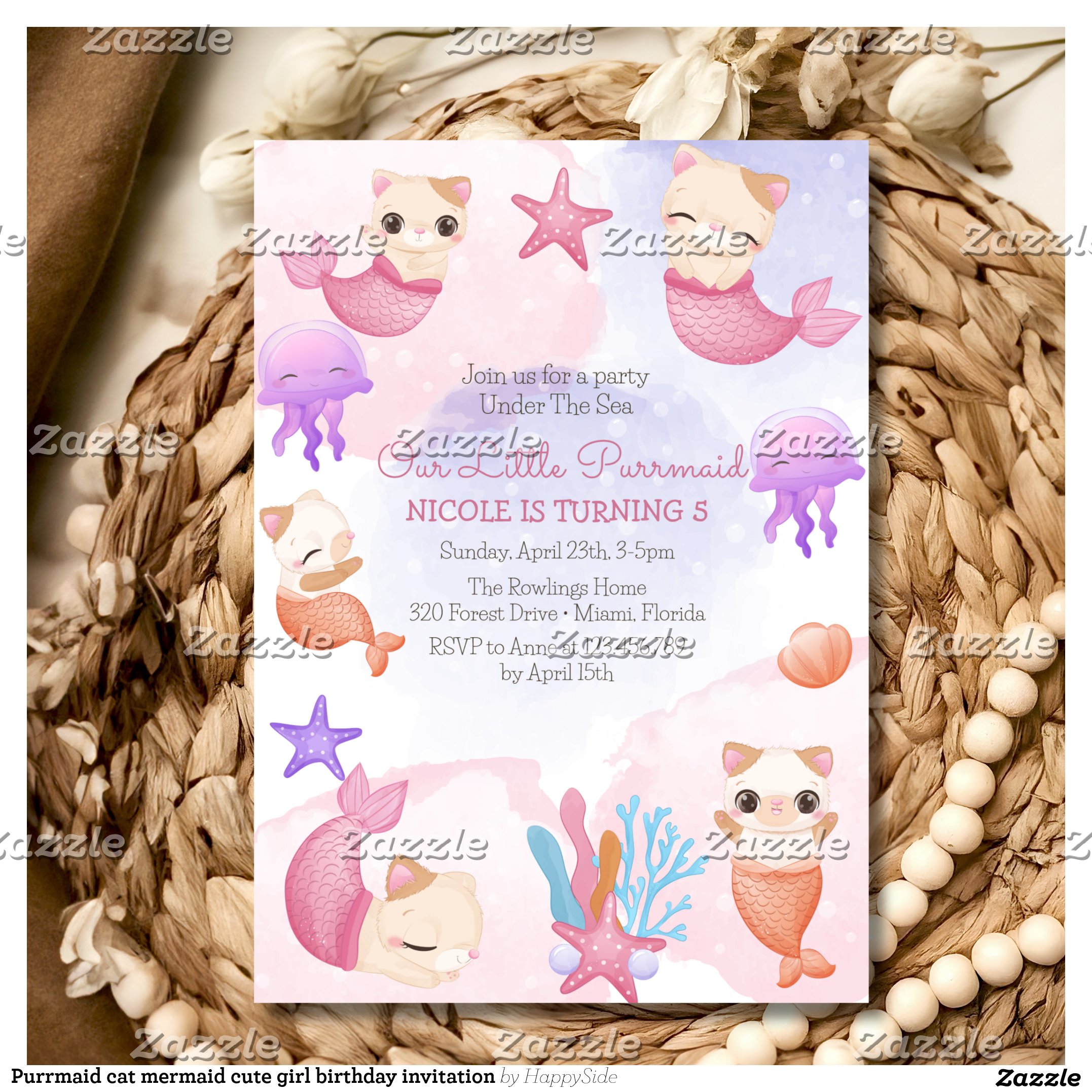 Be the first to review “Purrmaid cat mermaid cute girl birthday invitation”