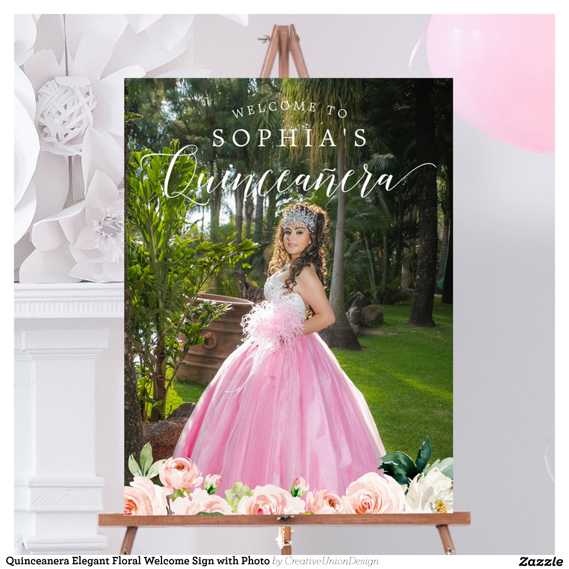 Quinceanera Elegant Floral Welcome Sign with Photo