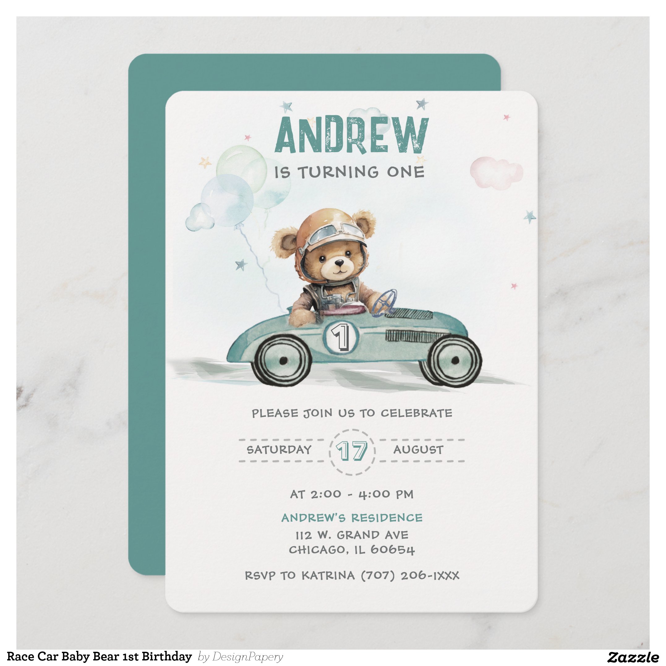 Be the first to review “Race Car Baby Bear 1st Birthday Invitation”