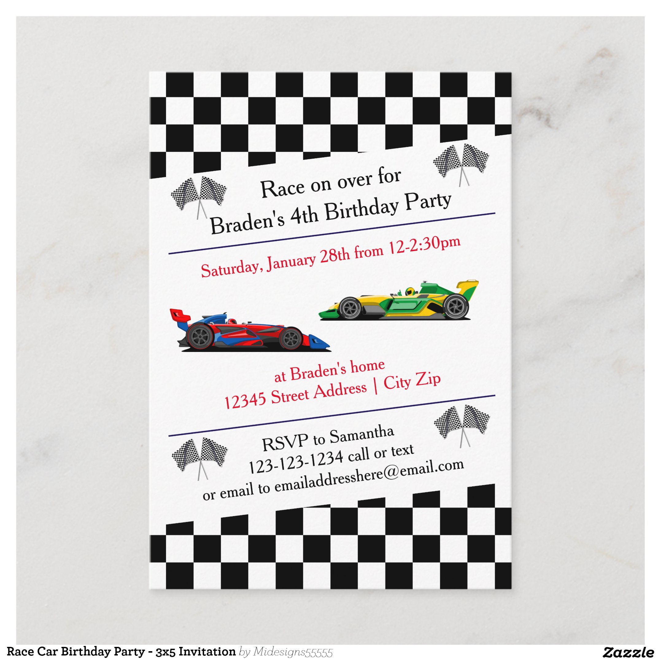 Race Car Birthday Party – 3×5 Invitation