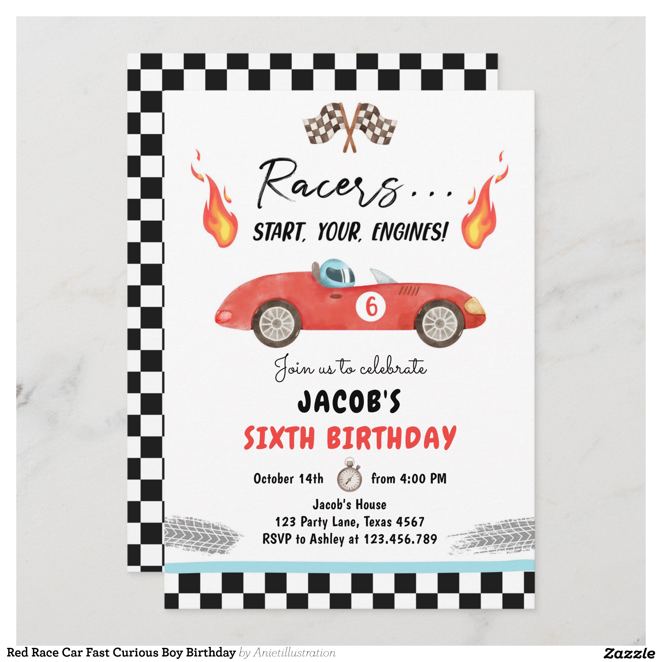 Be the first to review “Red Race Car Fast Curious Boy Birthday Invitation”