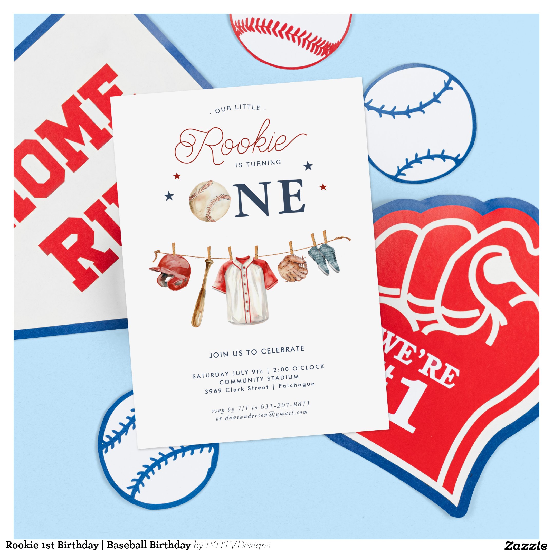 Rookie 1st Birthday Baseball Birthday Invitation