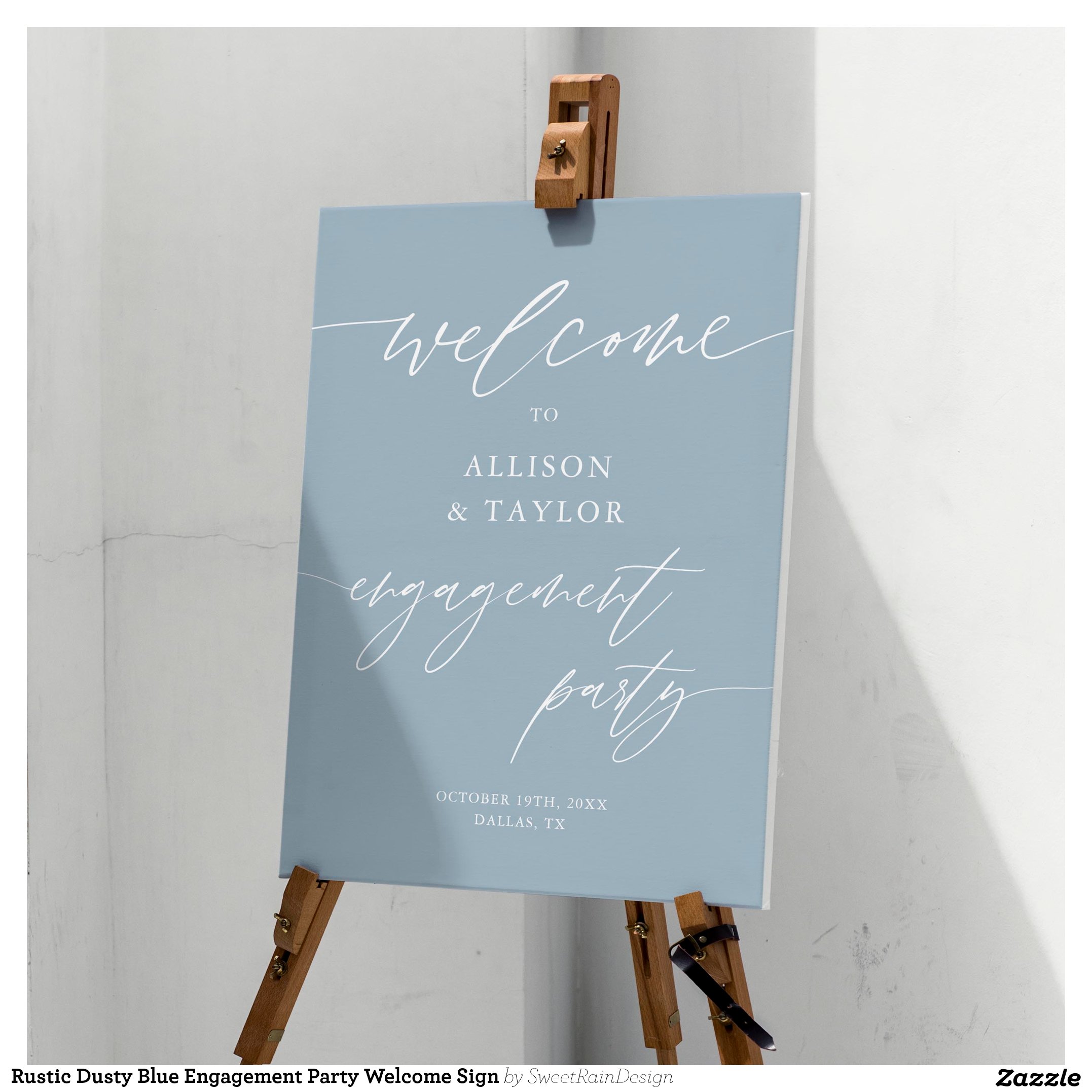 Rustic Dusty Blue Engagement Party Welcome Sign