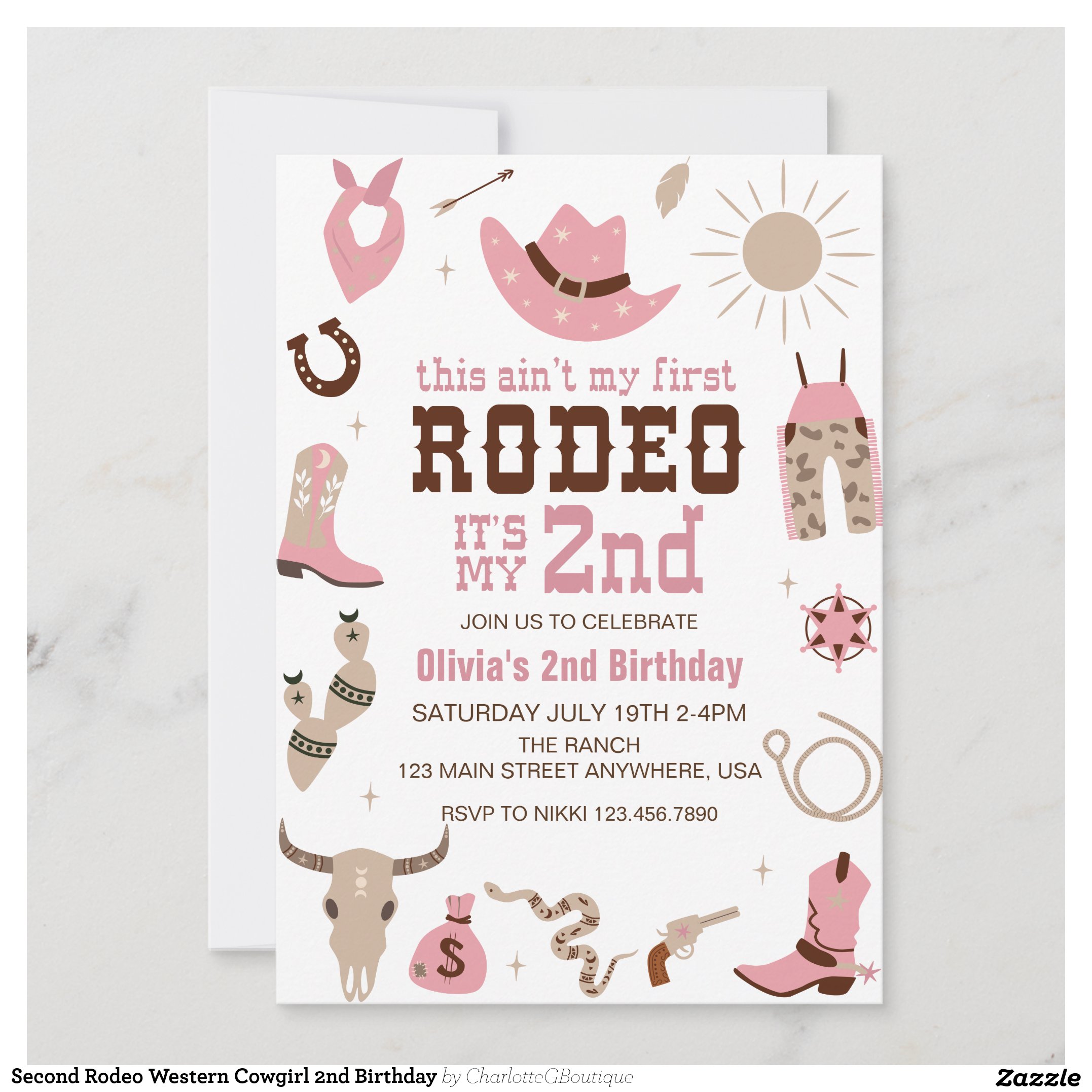 Second Rodeo Western Cowgirl 2nd Birthday Invitation
