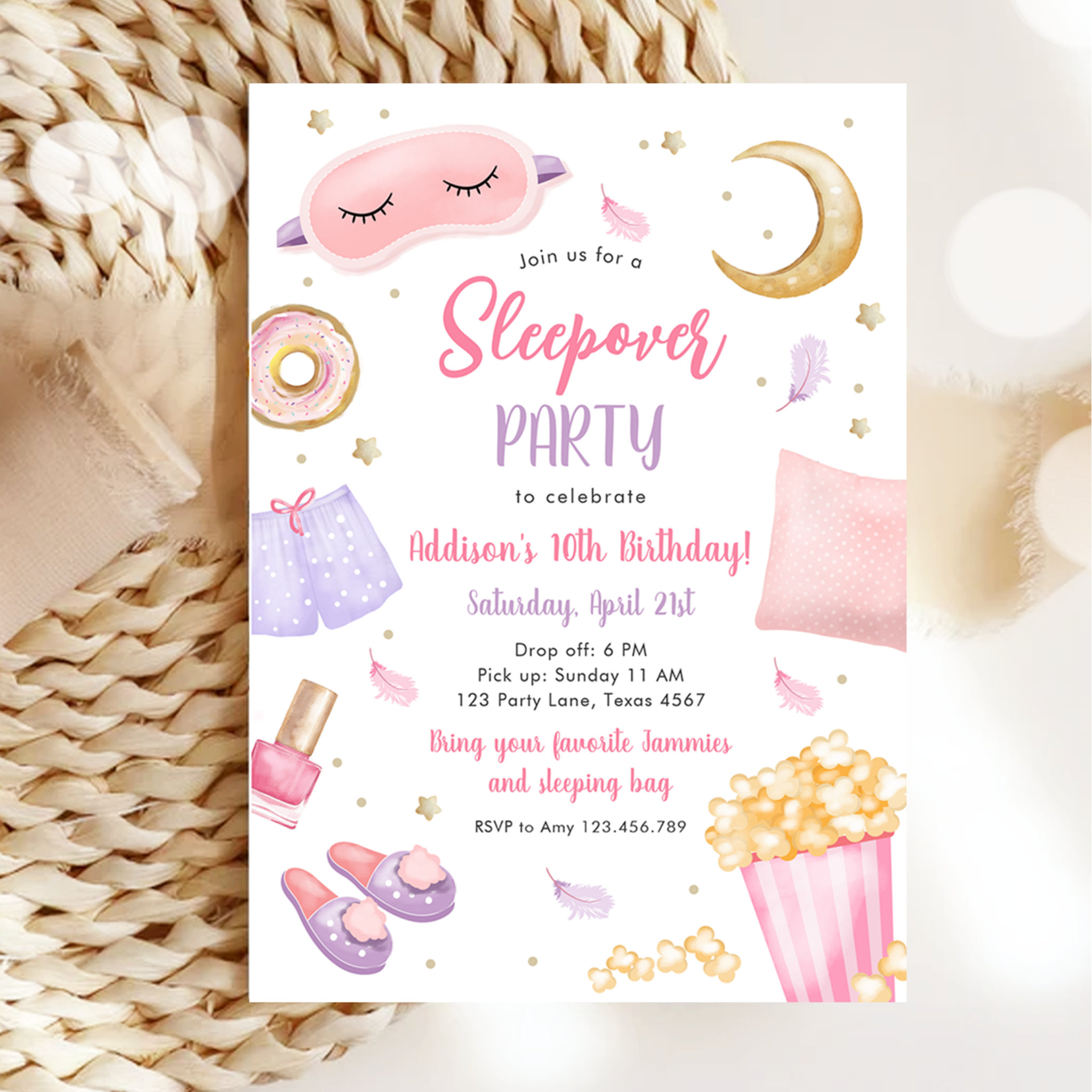 Sleepover Slumber Party Girl Spa Pink Birthday Invitation