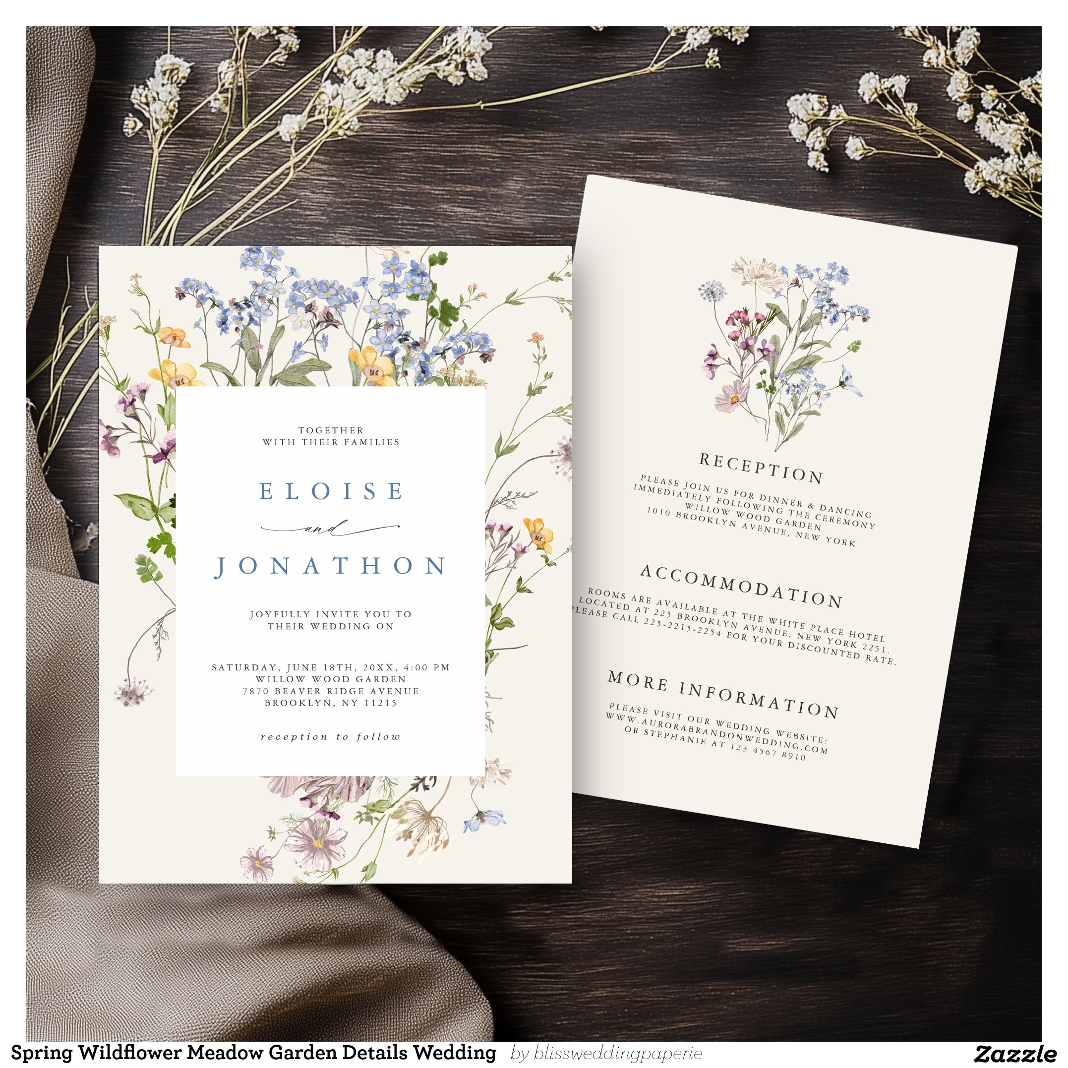 Spring Wildflower Meadow Garden Details Wedding Invitation