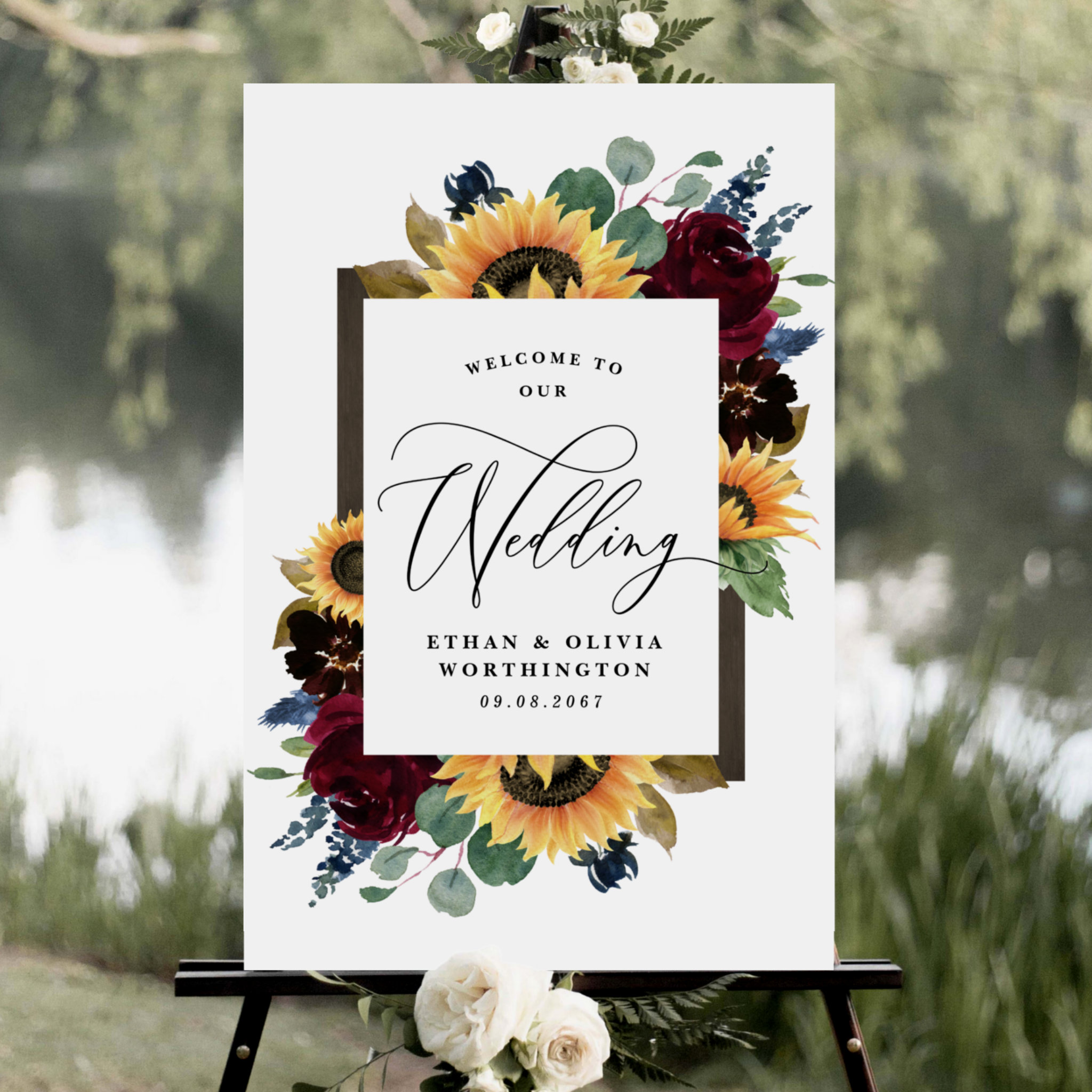 Sunflower Rustic Fall Welcome to Our Wedding Sign