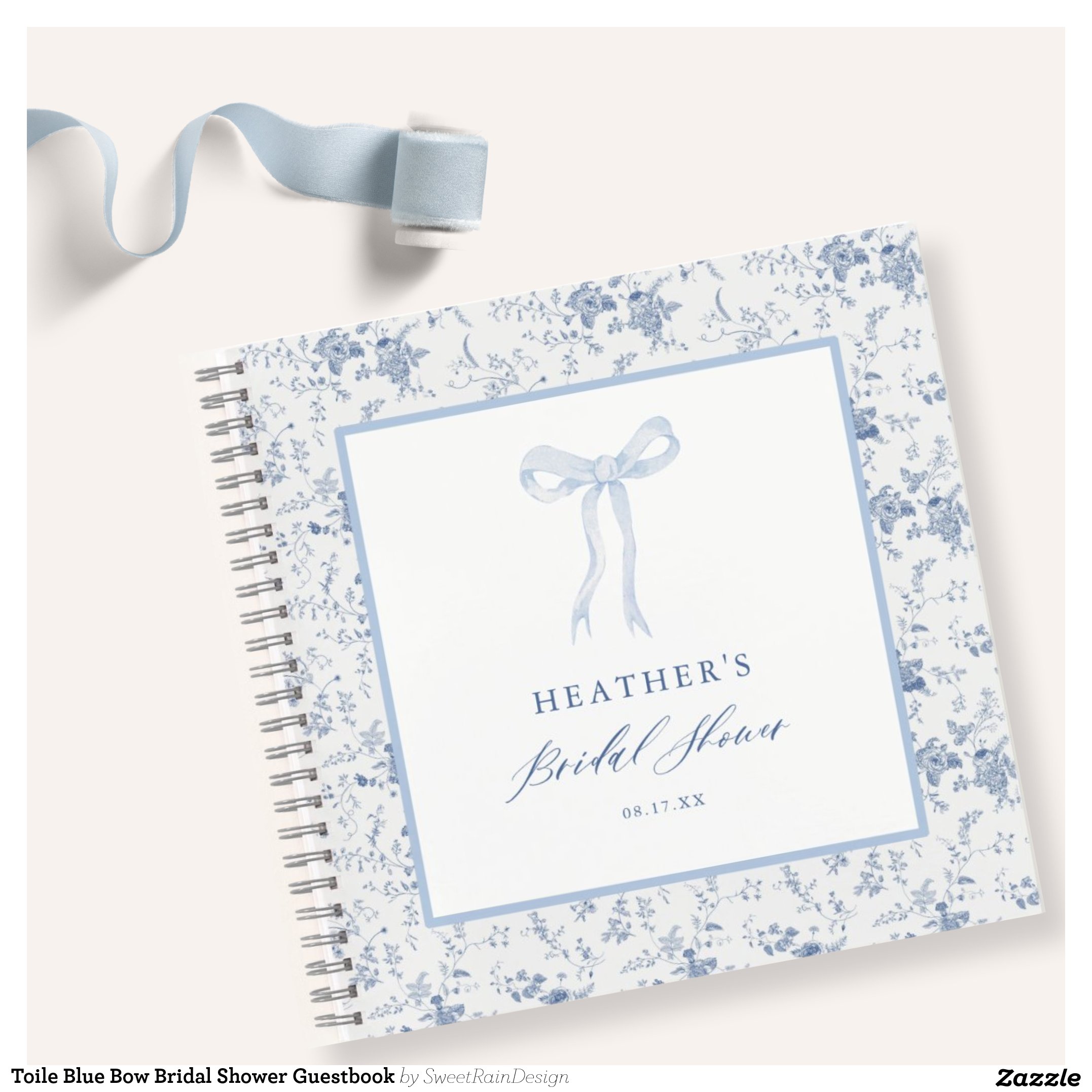 Be the first to review “Toile Blue Bow Bridal Shower Guestbook Notebook”