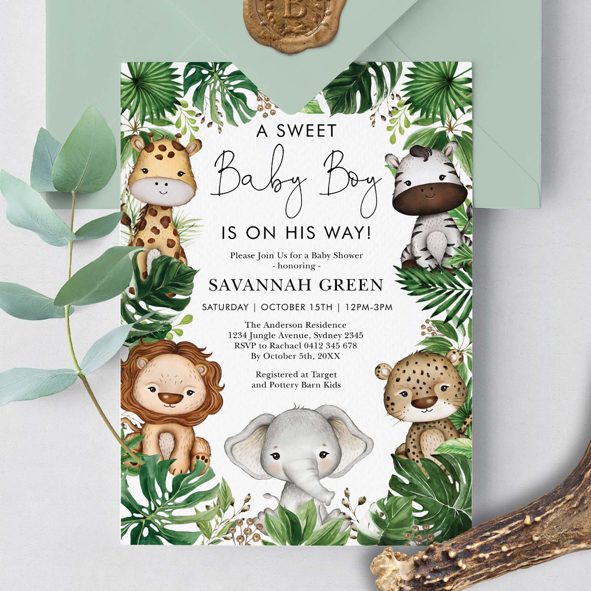 Tropical Jungle Safari Animals Boy Baby Shower Invitation