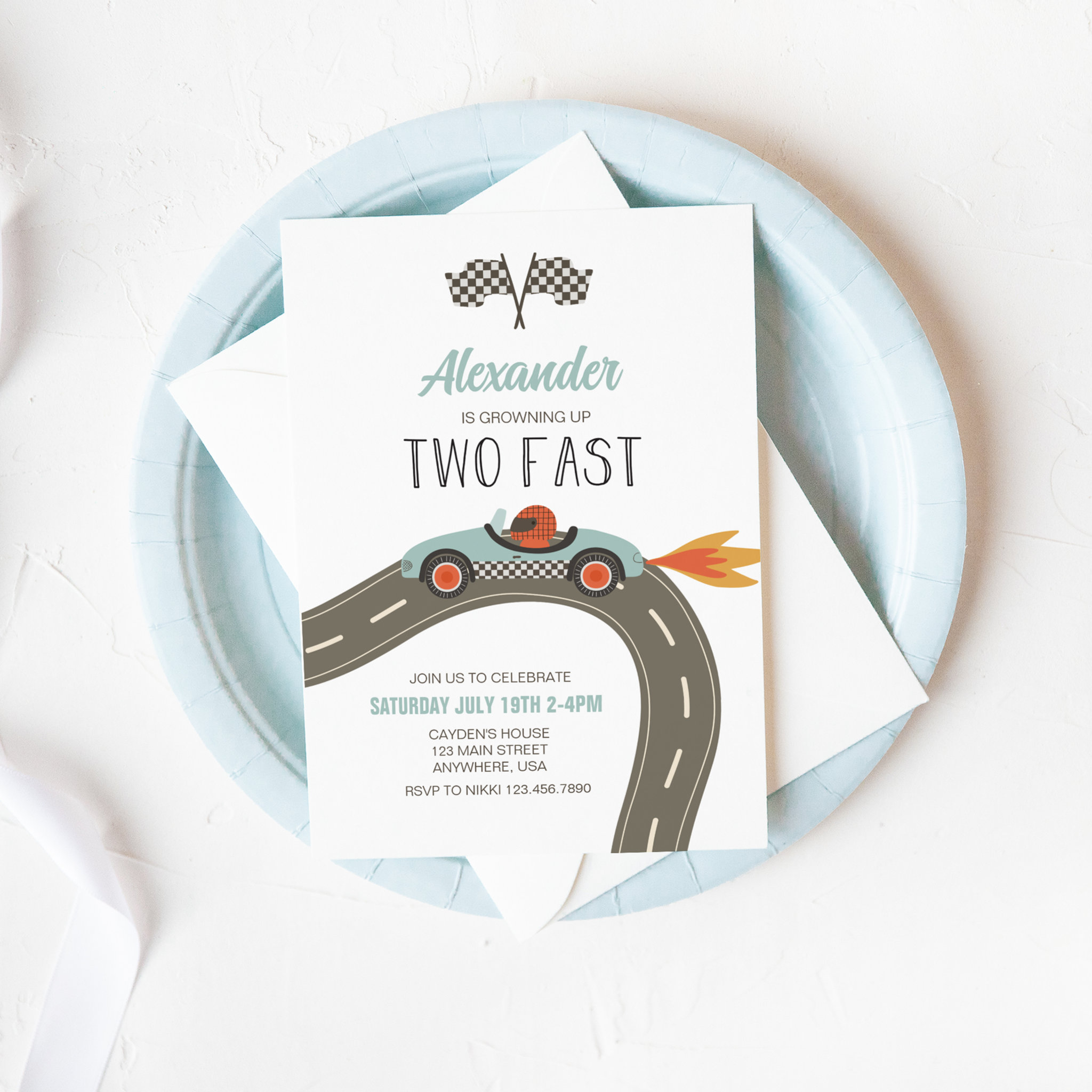 Be the first to review “Two Fast BLUE Race Car Birthday Invitation”