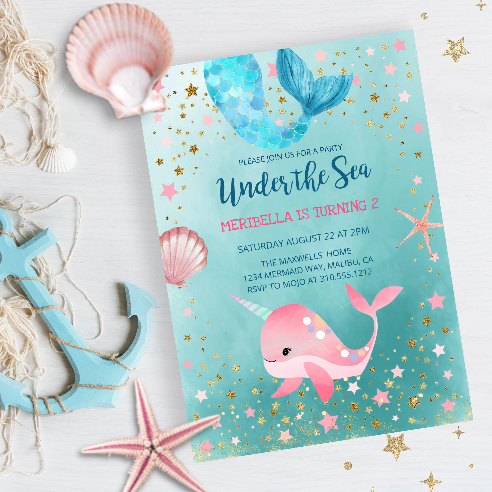 Be the first to review “Under the Sea Mermaid Narwhal Birthday Invitation”