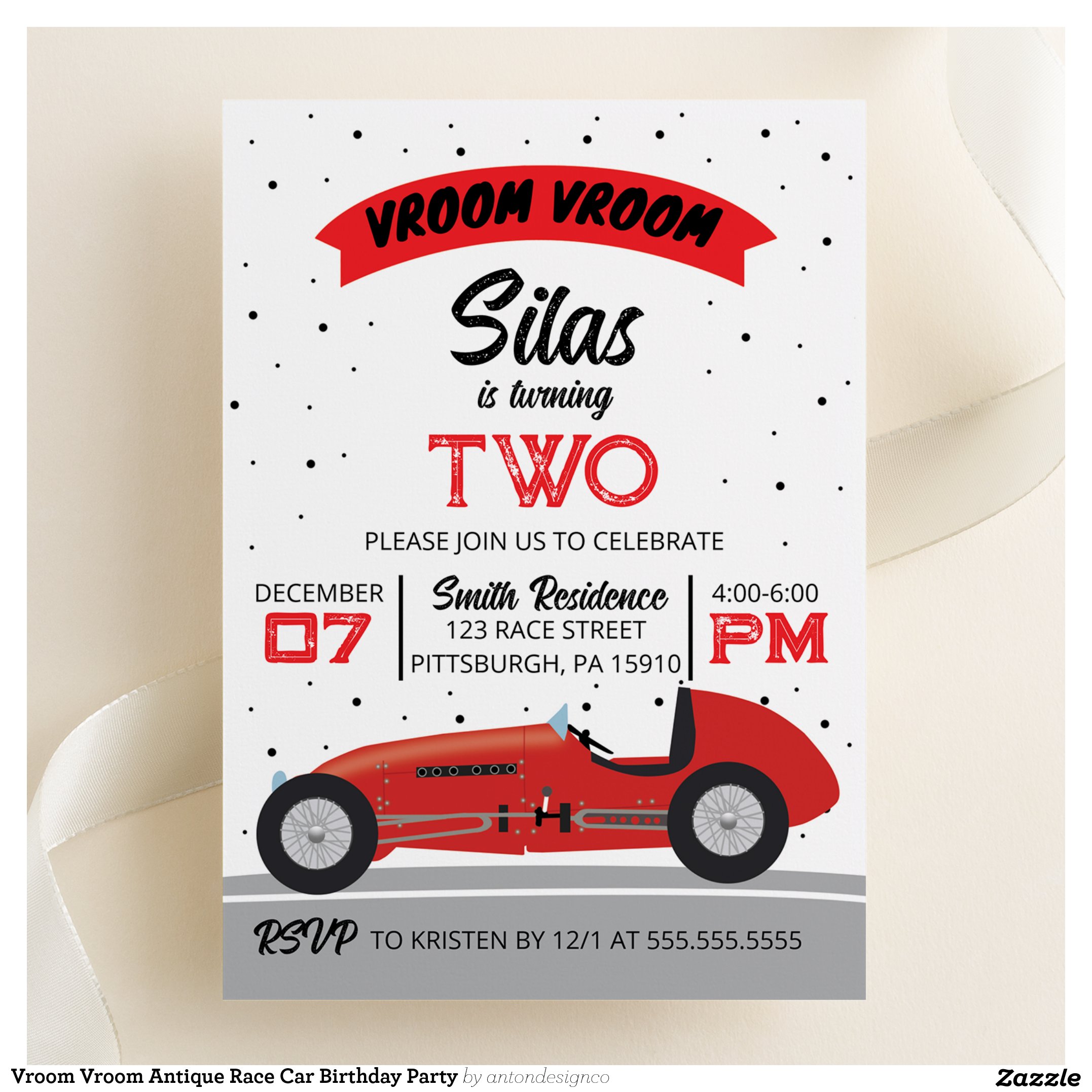 Vroom Vroom Antique Race Car Birthday Party Invitation