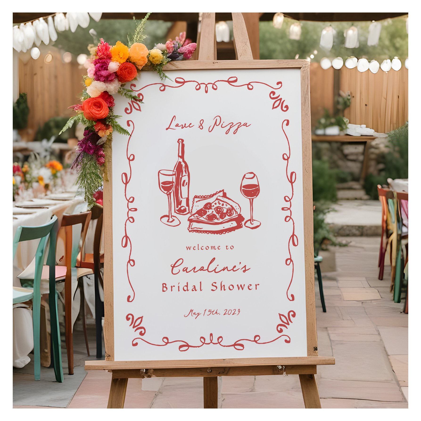 Be the first to review “Whimsical Hand Drawn Pizza Wine Bridal Shower Sign”